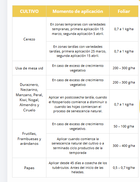 Cada huerto presenta realidades distintas según variedad, edad, carga y zona productiva. Por ello, la definición de dosis y momento de aplicación debe ajustarse técnicamente.