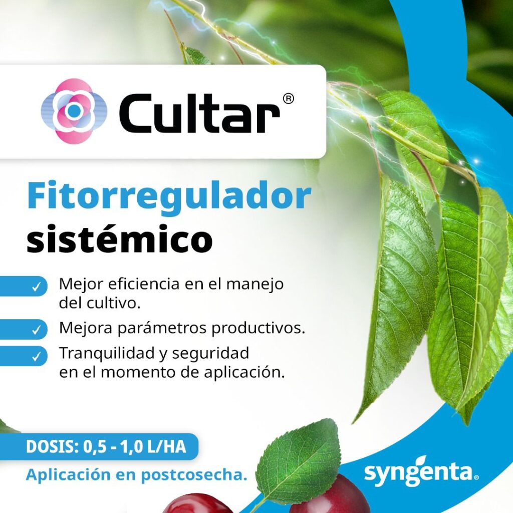 El otro producto que fue presentado en la instancia es CULTAR, una nueva solución que ayuda en la eficiencia del manejo del cultivo, favorece el desarrollo de un árbol más equilibrado, reduce el largo de entrenudos, mejorando la penetración de luz en el cultivo la siguiente temporada.