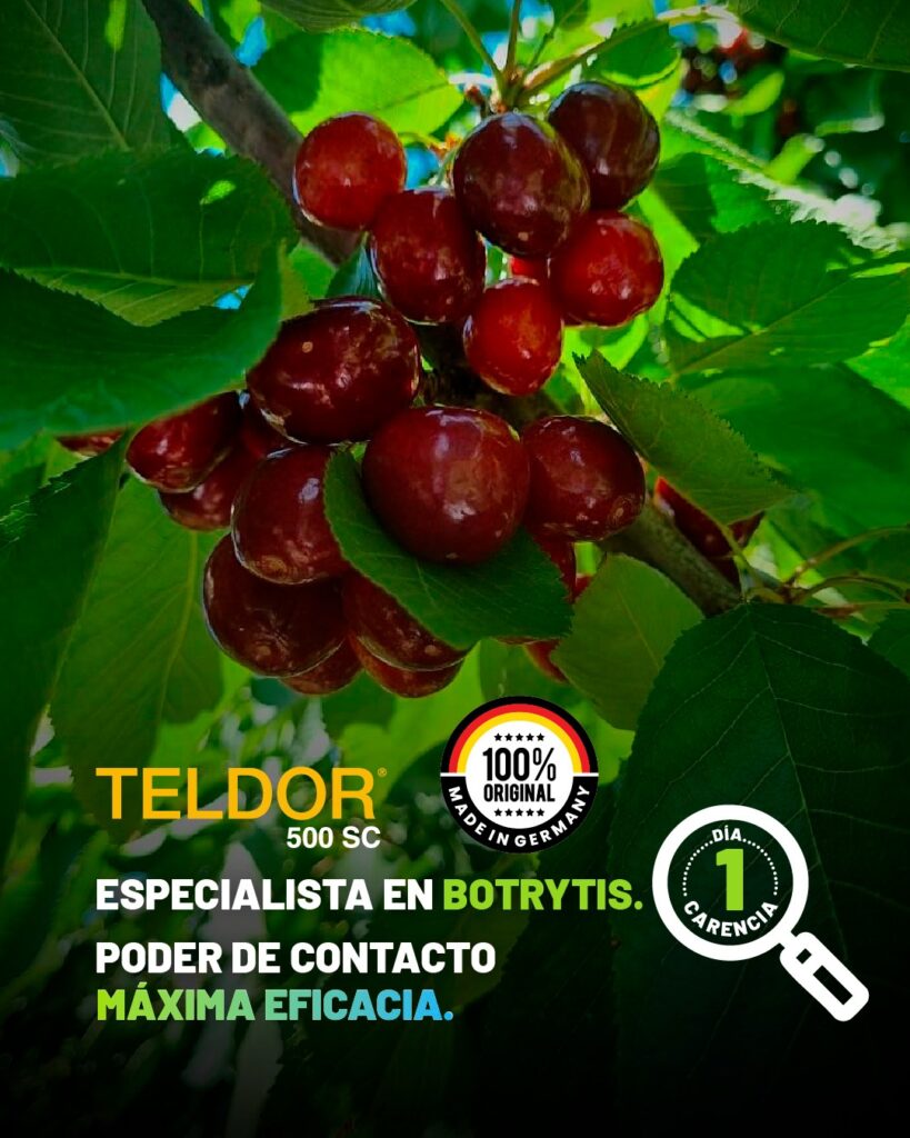 - Teldor® — De contacto, especialista en Botrytis. Fungicida con amplia trayectoria de uso. Dosis única, 1 día de carencia.