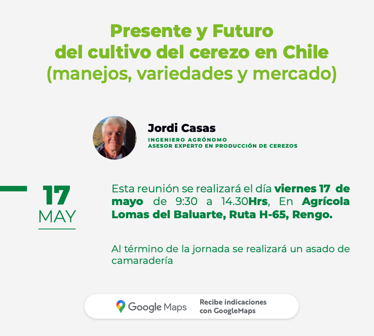 May 30 Cómo enfrentar los desafíos de la nueva temporada de cerezos Agricola Solfrut - Los Quillayes, Sagrada Familia , Chile