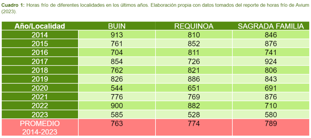 Se debe considerar que la etapa de dormancia, no solo está definida por la cantidad de frío acumulado en el ciclo, sino también regulada por la longitud del fotoperiodo, el cual siendo más corto, asume una mejor calidad de dormancia.