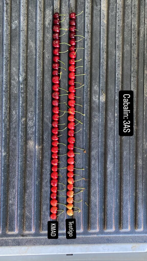 Evaluar el efecto de la aplicación pre-cosecha del producto K-MAD®, sobre los parámetros de calidad (peso, calibre, color y sólidos solubles) de frutos de cerezo cv. Santina, Lapins y Bing.