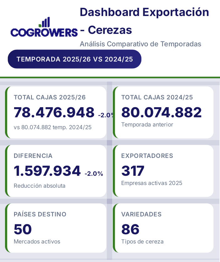 Análisis integral del desempeño de la exportación de cerezas durante la temporada 2025/26, en comparación...