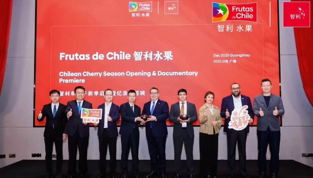 El Comité de Cerezas inauguró oficialmente la temporada 2025/26 en China con un evento de alto nivel y el estreno de un documental que destaca la fortaleza, la calidad y la larga colaboración de la industria chilena de la cereza con los actores comerciales chinos.