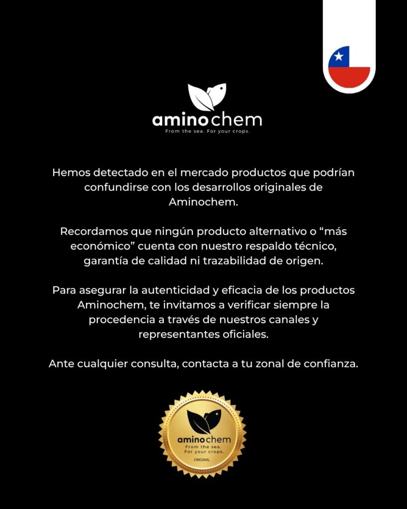 Verifica siempre la procedencia de tus insumos y consulta con tu zonal ante cualquier duda: https://aminochem.com/cl/nosotros/