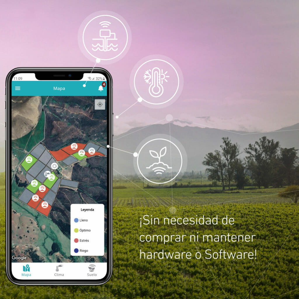 Se trata de una modalidad pionera en el rubro de la agricultura en Chile, donde el productor contrata el servicio, y recibe información sobre parámetros claves y notificaciones sobre éstos en tiempo real.