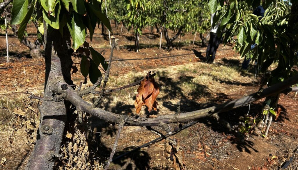 La eliminación de ramas secas no implica una pérdida de producción real, ya que esa rama ya se perdió desde el punto de vista productivo. Por el contrario, esta labor ayuda a proteger la vida útil del huerto, reduciendo el inóculo y permitiendo recuperar estructura productiva con el tiempo, lo que contribuye a sostener la productividad a largo plazo.