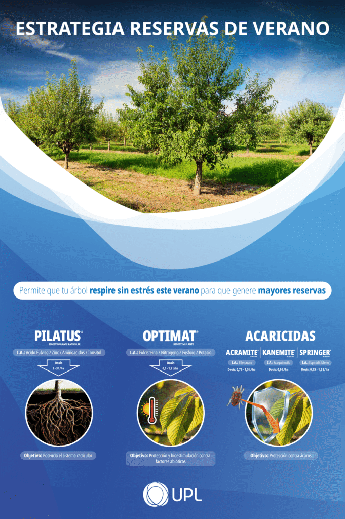 La Estrategia de Reservas de Verano de UPL apunta a que los frutales mantengan su eficiencia fisiológica incluso bajo condiciones de calor y estrés ambiental.